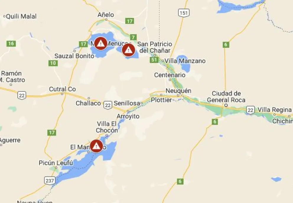 En un primer momento se conoció la presencia de cianobacterias en el lago de Villa El Chocón a través del alerta de la Autoridad Interjurisdiccional de Cuencas (AIC). Luego, fue el ministerio de Salud el que informó que también había cianobacterias en los lagos Mari Menuco y Los Barreales.
